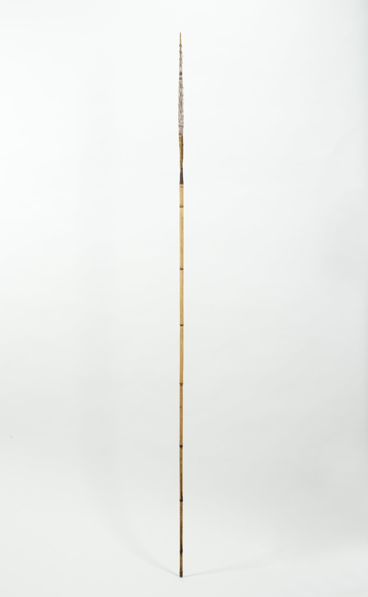 Kétrészes nyílvessző. A bambuszból készült szárba növényi rosttal rögzítették a fából készült hegyet, melyhez ugyancsak növényi rostzsinórral tüskéből készült szakákat erősítettek. Rost tekercseléssel erősítették meg a nyílvessző végén található rovátkát is, ami a nyílvesszőnek az íj húrjába történő beillesztését segítette.