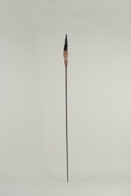 PA: Az obszidián hegy ép. Hosszúsága 207,0 mm, szélessége 48,6 mm, vastagsága 18,6 mm (a disztális végétől 105,6 mm-re). Oldalnézetben enyhén csavart, ívelt profilú, szabálytalan kereszt-metszetű. A bal oldalél disztális vége 100,0 mm hosszan elnagyoltan retusált; a jobb oldalél disztális végén 82,5 mm hosszú retusálás. A disztális végen, a gerincen néhány nagyobb leválasztás.