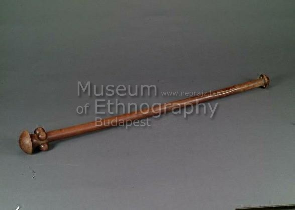 Világosbarna keményfából készült, enyhén görbe vonalú, egyenetlen keresztmetszetű buzogány. A markolatgomb gombafejű. A gomba alatt 55 mm-re négy darab 30,1 mm hosszú, 27,9 mm széles, és 22,6 mm magas 'bütyök' található, a nyél kerületén körben arányosan elosztva. PA