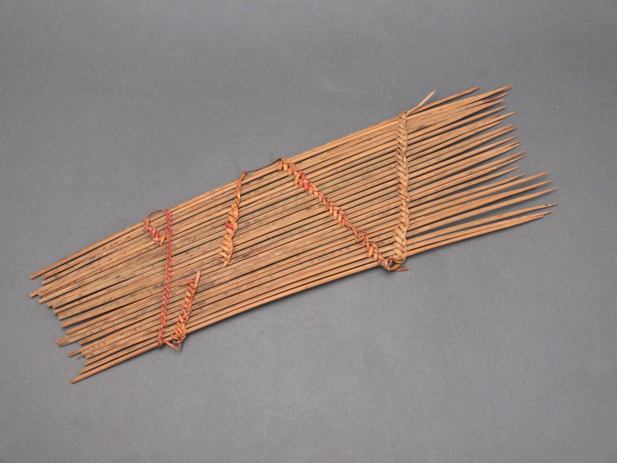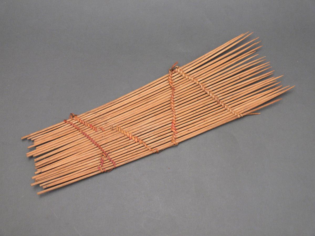 26 db egyik végén kihegyezett vékony, világosbarna fapálcikából áll, amelyeket átlós irányba húzódó vöröses és világossárga rostanyag tart össze. A fésű alakja hosszúkás téglalap. Bíró jegyzett 553