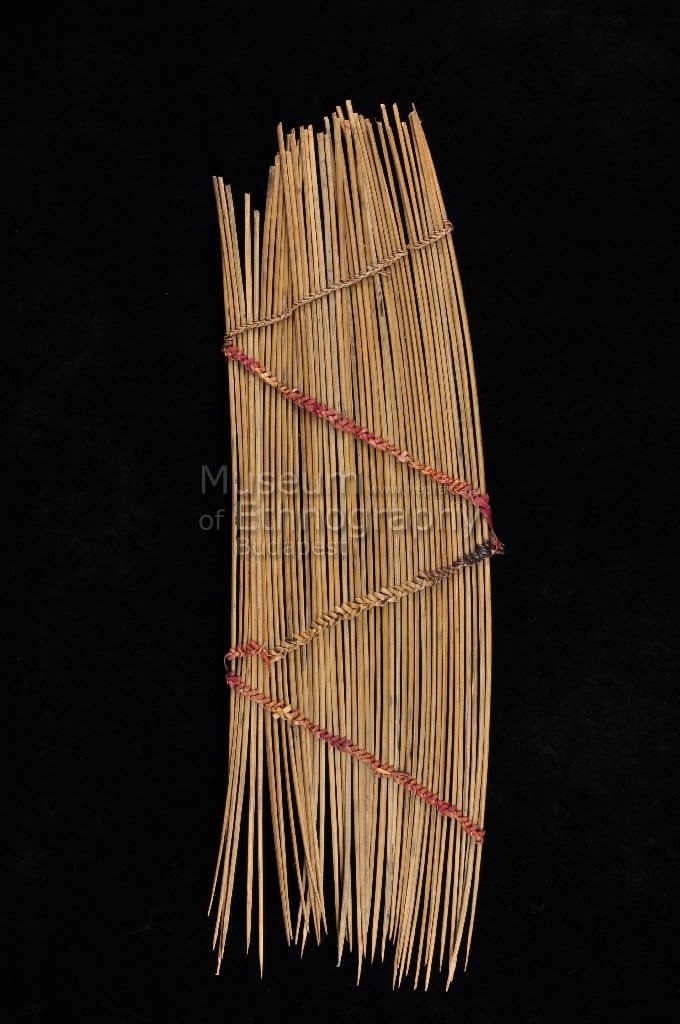 Negyvenhárom darab egyik végén kihegyezett vékony, világosbarna színű fapálcikákból áll, amelyeket vöröses és világos-színű rostanyag fűz egymáshoz. A fésű alakja hosszúkás téglalap. Bíró-jegyzet 553