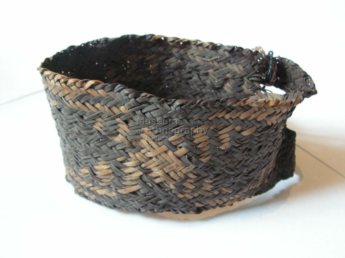 Vékony sárga és fekete színű spanyolnádcsíkokból készített, sűrű fonatú karkötő. A fekete csíkok geometrikus minta szerint vannak elrendezve, a világosak 3 x-et alkotnak, egy helyen a két fekete oldalsó csík mellett lyuk van és a szélek kiemelkednek