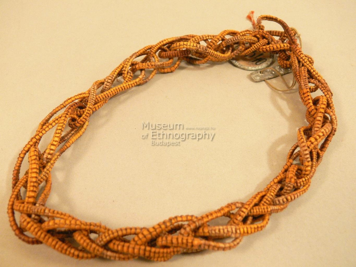 Aranysárga orchideaháncsból font vékony zsinór karikába kötve. Bíró jegyzet: 516