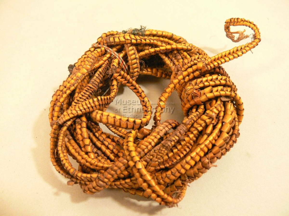Aranysárga orchideaháncsból font vékony zsinór karikába kötve. Bíró jegyzet: 516