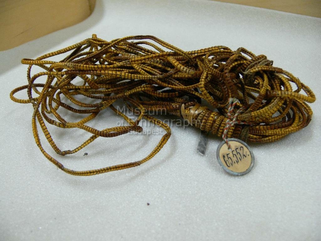 Aranysárga orchideaháncsból font vékony zsinór karikába kötve. Bíró jegyzet: 557