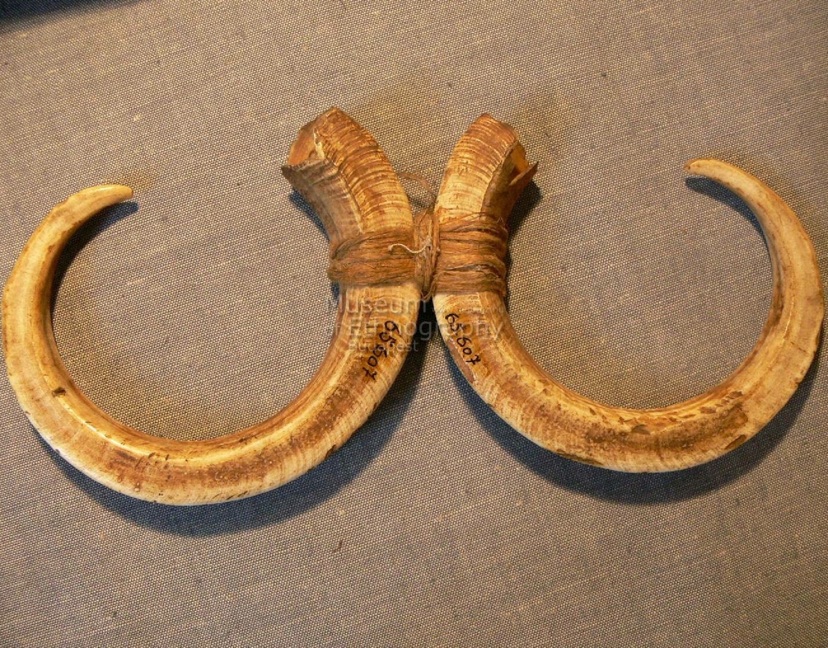 Két körbehajló vadkanagyar, vastagabb végénél, egymásnak háttal háncsfonattal összekötve, Bíró-jegyzet: 559