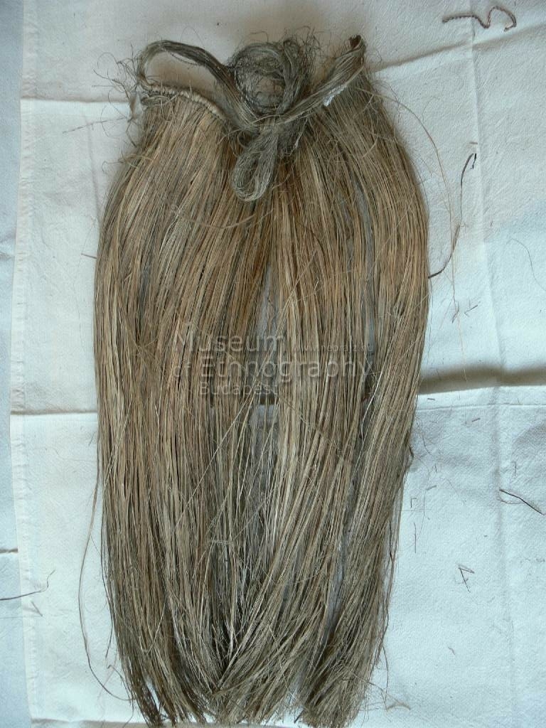 Pandanus rostból készült világosbarna kötény. Derekát növény rostfonat képezi.