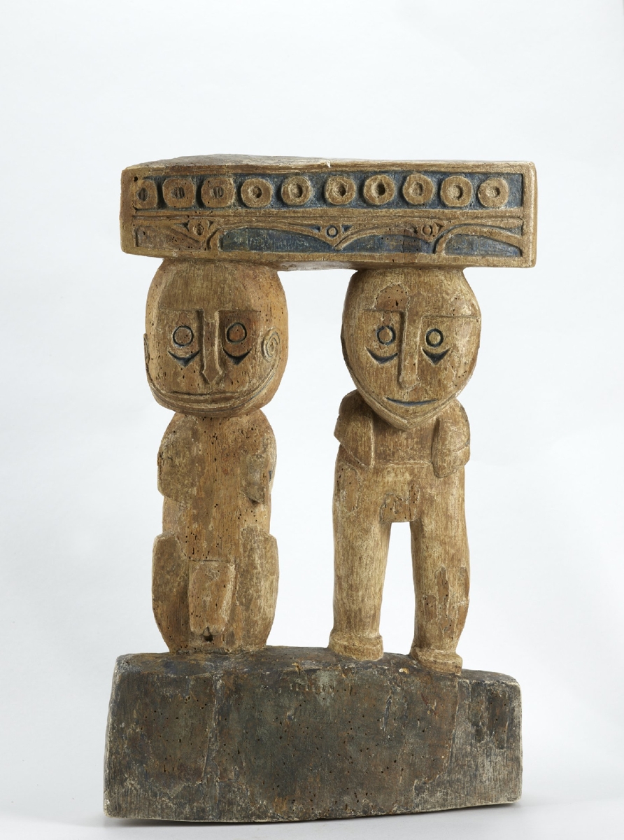 A tárgyat Róheim Géza gyűjtötte 1930-ban kilenc hónapos terepmunkája során. Feljegyzései szerint Tajnava híres fafaragó készítette. Kaszabwajbwajlétát, a Massim-térség egyik legismertebb, a kula csereciklusban is szerepet játszó mitikus alakját és feleségét ábrázolja. A feltevések szerint négy másik, ugyancsak Róheim gyűjtötte és stílusában szintén unikális tárggyal együtt egy mítosz szereplőit jelenítik meg.