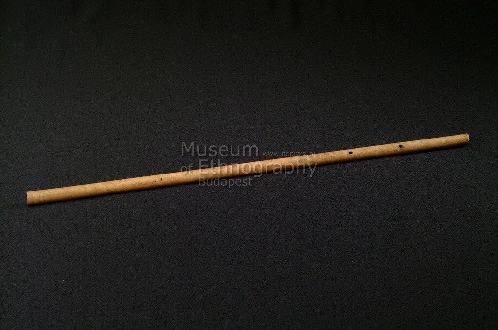 Vékony, hengeres, sárgás színű nád, egyik végén két kis nyílással.