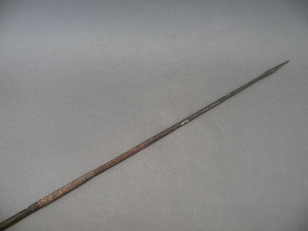 Kétrészes nyílvessző. A bambuszból metszett szárba növényi rosttal rögzítették a fából faragott, kerek keresztmetszetű hegyet.