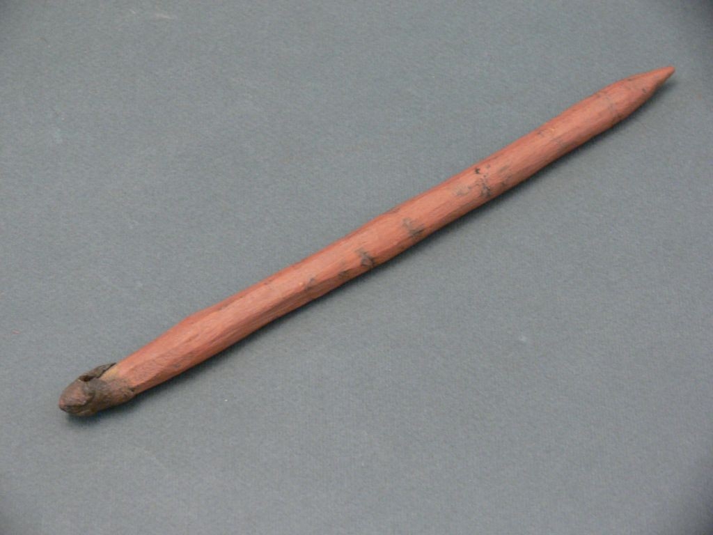 Színezett, kihegyezett végű pálca, másik végén gyanta madzagmaradvánnyal.