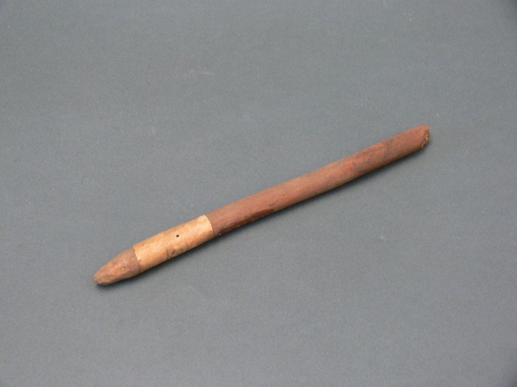 Kihegyezett végű, színezett pálca. Töredezett.