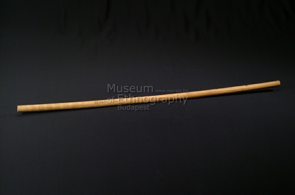 Vékony, hengeres, sárgás színű nád, egyik végén két kerek nyílással.