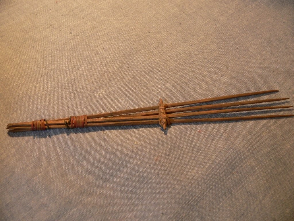 Négy fapálca, egyik végüknél összekötözve. Innentől a tárgy háromszögszerűen kiszélesedik, alsó harmadában keresztirányban pálcika van rákötözve, ami szélesebbre feszíti.