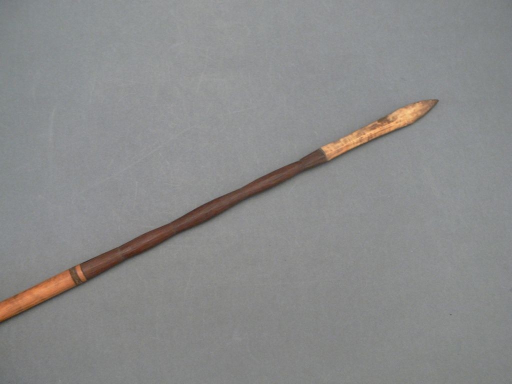Háromrészes nyílvessző. Nádból készült szárba kéményfából faragott középrészt illesztettek, ahhoz csontból faragott hegyet rögzítettek.