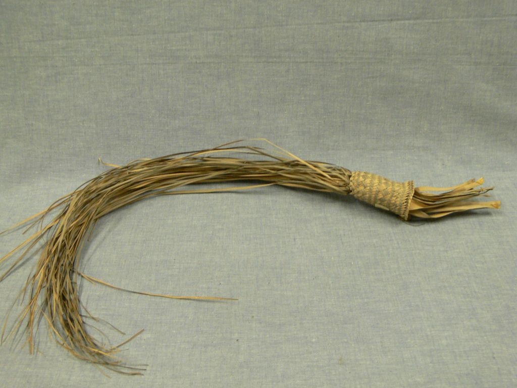 Vékony, keskeny, puha gyékénycsíkokból fonott kis kosárka. Zárt végéről hosszú szálak, nyitott végéről keskeny csíkok lógnak. A kosarat alkotó csíkok világos és sötét színűek, a kettő váltakozásából adódik a díszítő motívum. A kosár hengeres.