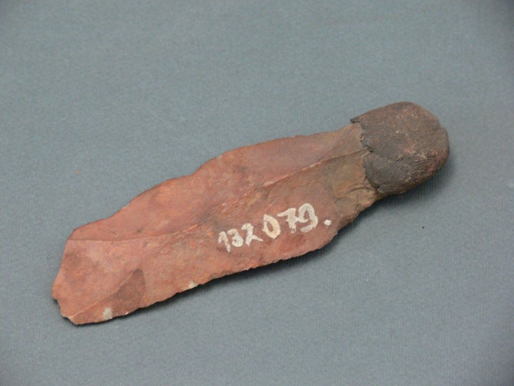 Pattintott kő, egyik végén gyanta.