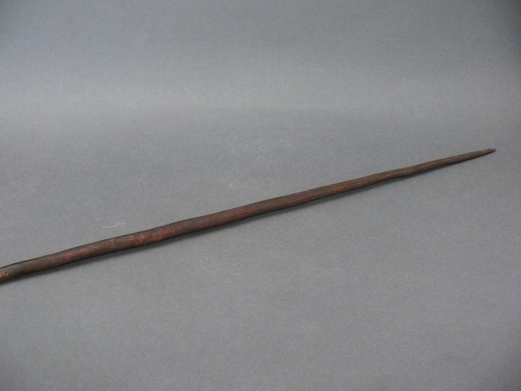 Kétrészes nyílvessző. A bambuszból metszett szárba növényi rostfonattal rögzítették a keményfából faragott, kerek keresztmetszetű hegyet.
