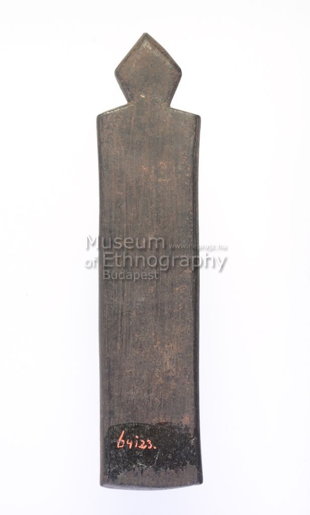 Barna falapból faragott eszköz (måt, tami). Markolatként szolgáló részét elnyújtott téglalap formában alakították ki. Ennek egyik végéhez csatlakozik a hálószem megcsomózására szolgáló rombusz alakú rész.