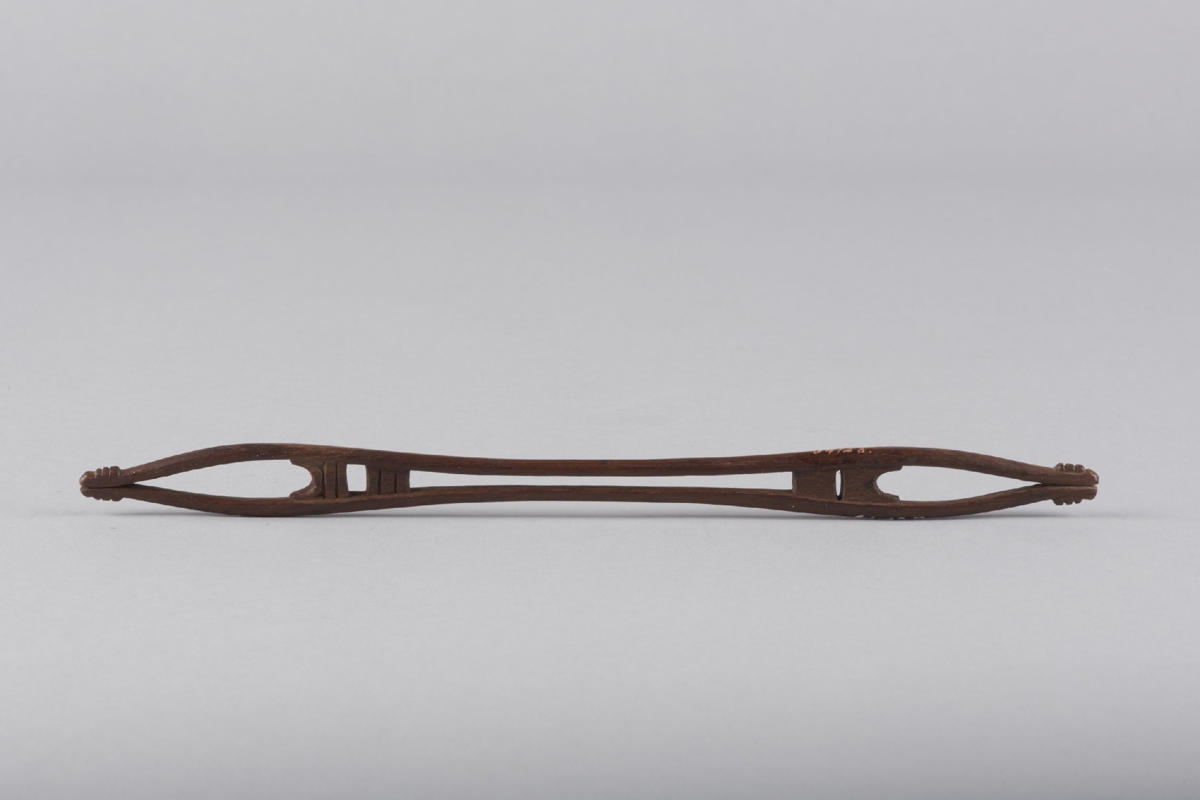 Egyetlen fadarabból faragott eszköz (szigun, tami). Középső áttört, összeszűkülő részére tekerhették föl a háló készítésére szolgáló zsinórt, melyet az eszköz csipesz-szerűen záródó két végén ereszthettek le a háló csomózása során.