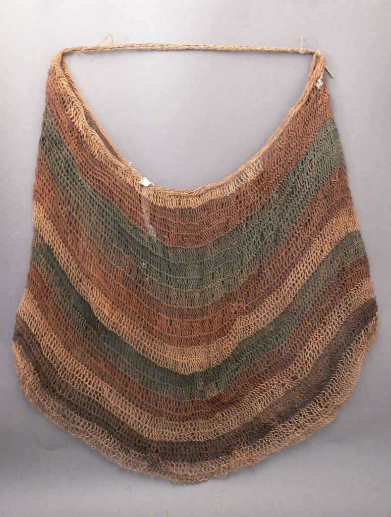 Növényrostokból, hurkolt technikával készített, nagy öblű, szatyoralakú, egyfülű tárgy, amelyet nyers-, barnás, vöröses-barnás és zöldes vízszintes sávok díszítenek. Bíró-jegyzet: 510/k.