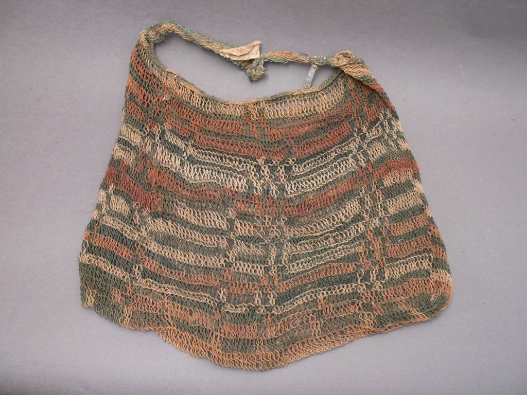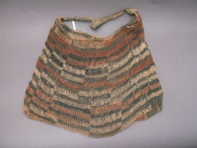 Növényrostokból, hurkolt technikával készített, szatyoralakú egyfülű tárgy, melyet világos, vöröses, kopott fekete színű sávok díszítenek csíkokban időnként függőleges megtörésekkel. Rajta textil csíkon Bíró-jegyzet: 509.