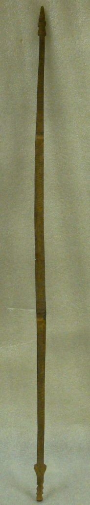Bambusz szárából kihasított csík, melyet kérgével befelé hajlítottak meg. Két végén a húr rögzítésére kiszélesedő részeket hagytak. Húrja elveszett.