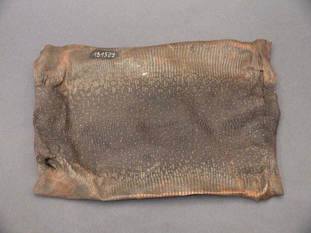 Téglalap alakú, világosbarna színű gyíkbőr.