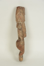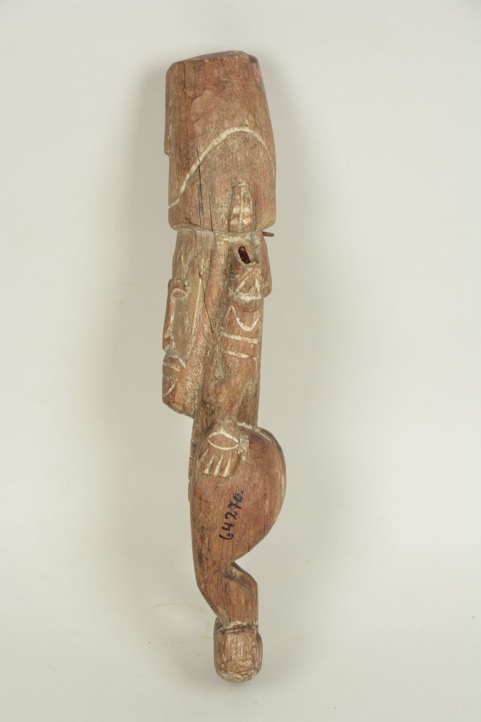 Bíró-jegyzet: 506: Díszitő faragvány, csónakra = gŏám átiti (jabim nyelven. Etymol. goám = faragott emberalakok (v.ö. 500 sz.), átiti = lecsüngő, függő.) Egy darab fából, úgy faragva, hogy mindkét végén lánczszem módjára egy-egy alak függ. (Egyik letört, különben nem is kaptam volna meg.) A nagy csónak emelvényen keresztben van a helye.