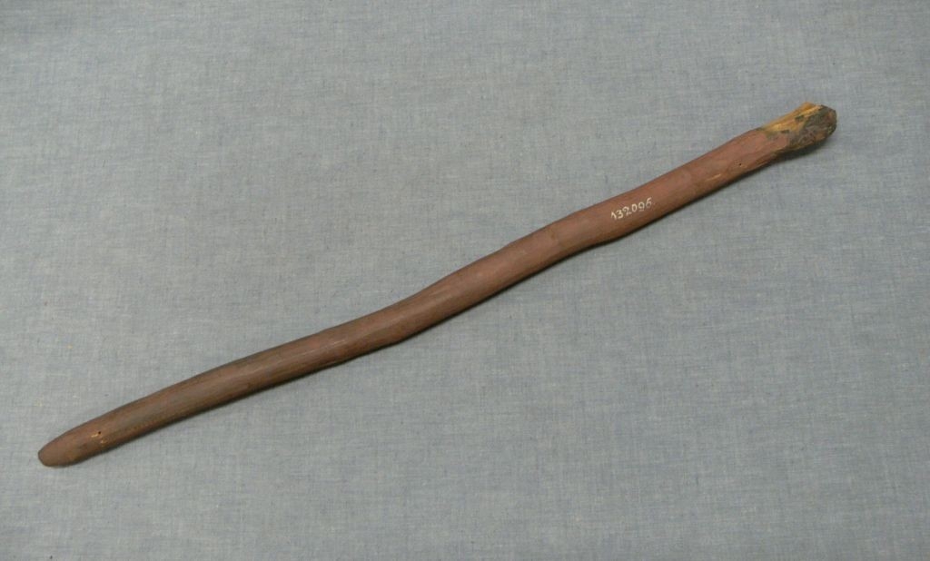 Faágból készült , vörösre festett véső. Egyik végén tompa hegy, másik, vastagabb végén hasíték, rajta gyanta nyomaival. A hegye hiányzik