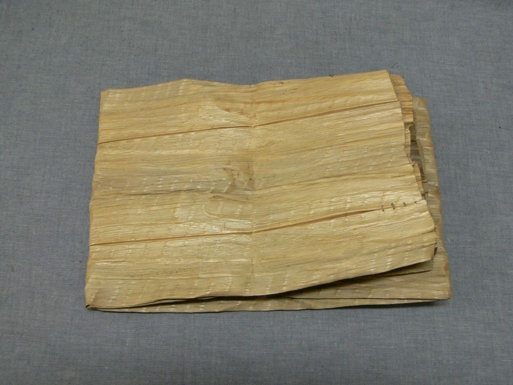 Hosszúkás téglalap alakú pálmalevélcsík halvány gometrikus mintákkal.