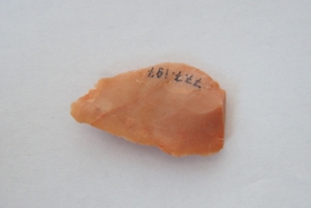 Sub-trianguláris keresztmetszetű retusálatlan hegy, a debitázstengelytől enyhén jobbra elhajló hossztengellyel. A hegye enyhén tompított.