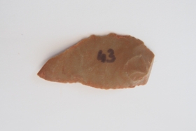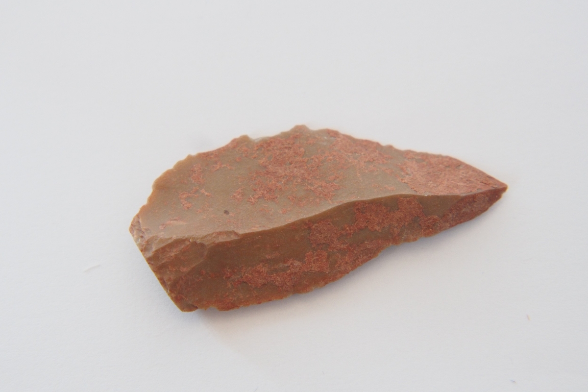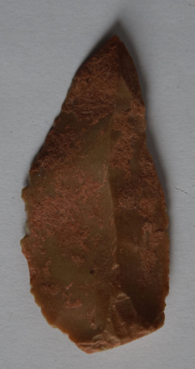 Sub-trianguláris keresztmetszetű, retusálatlan hegy a debitázstengelytől jobbra elhajló hossztengellyel.