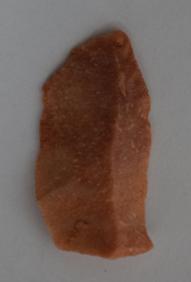 A debitázstengelyre megközelítőleg szimmetrikus (enyhén jobbra hajló), sub-trianguláris keresztmetszetű, retusálatlan hegy.
