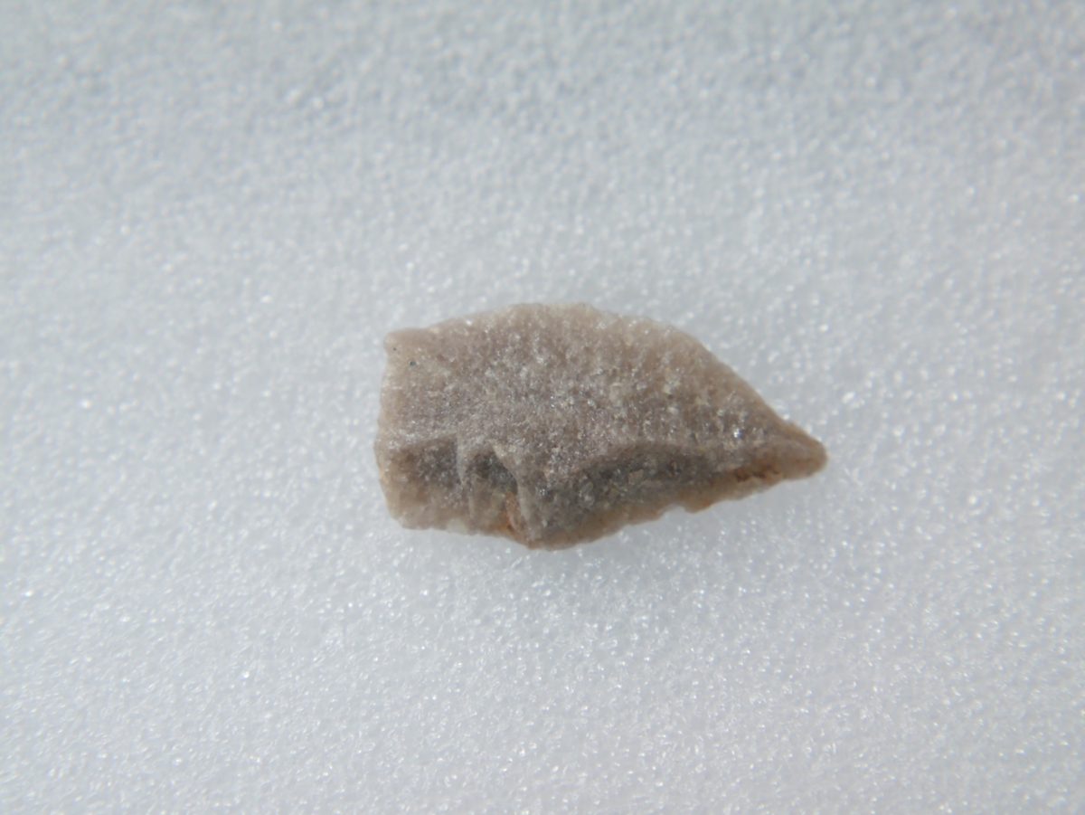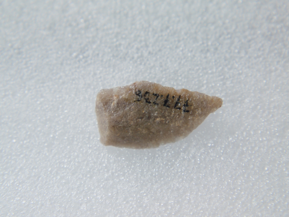 A debitázstengelytől enyhén jobbra elhajló, sub-trianguláris keresztmetszetű, retusálatlan hegy, hegye enyhén lekerekített.