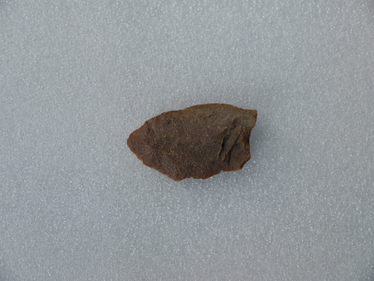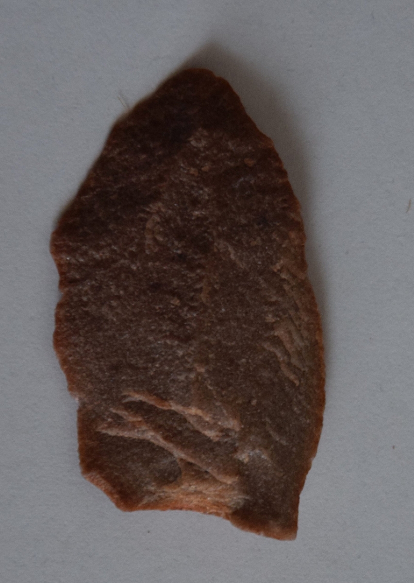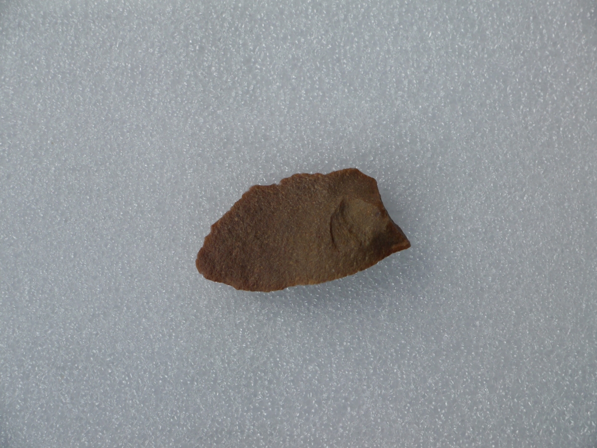 A debitázstengelytől enyhén balra elhajló, szabálytalan keresztmetszetű, retusálatlan hegy, hegye enyhén lekerekített.