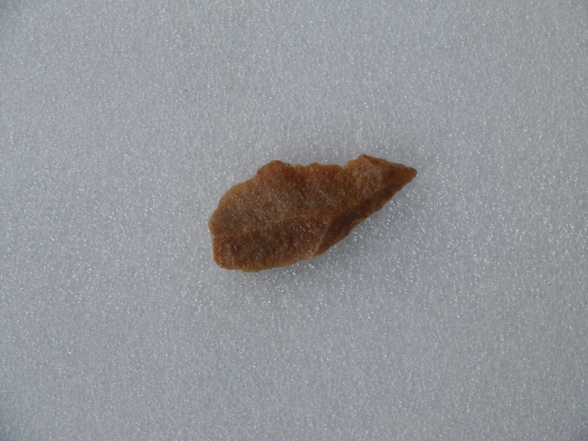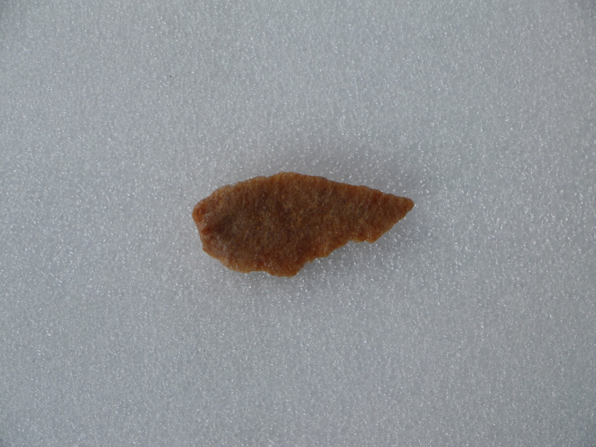 A debitázstengelytől enyhén balra elhajló, sub-trianguláris keresztmetszetű, retusálatlan hegy.