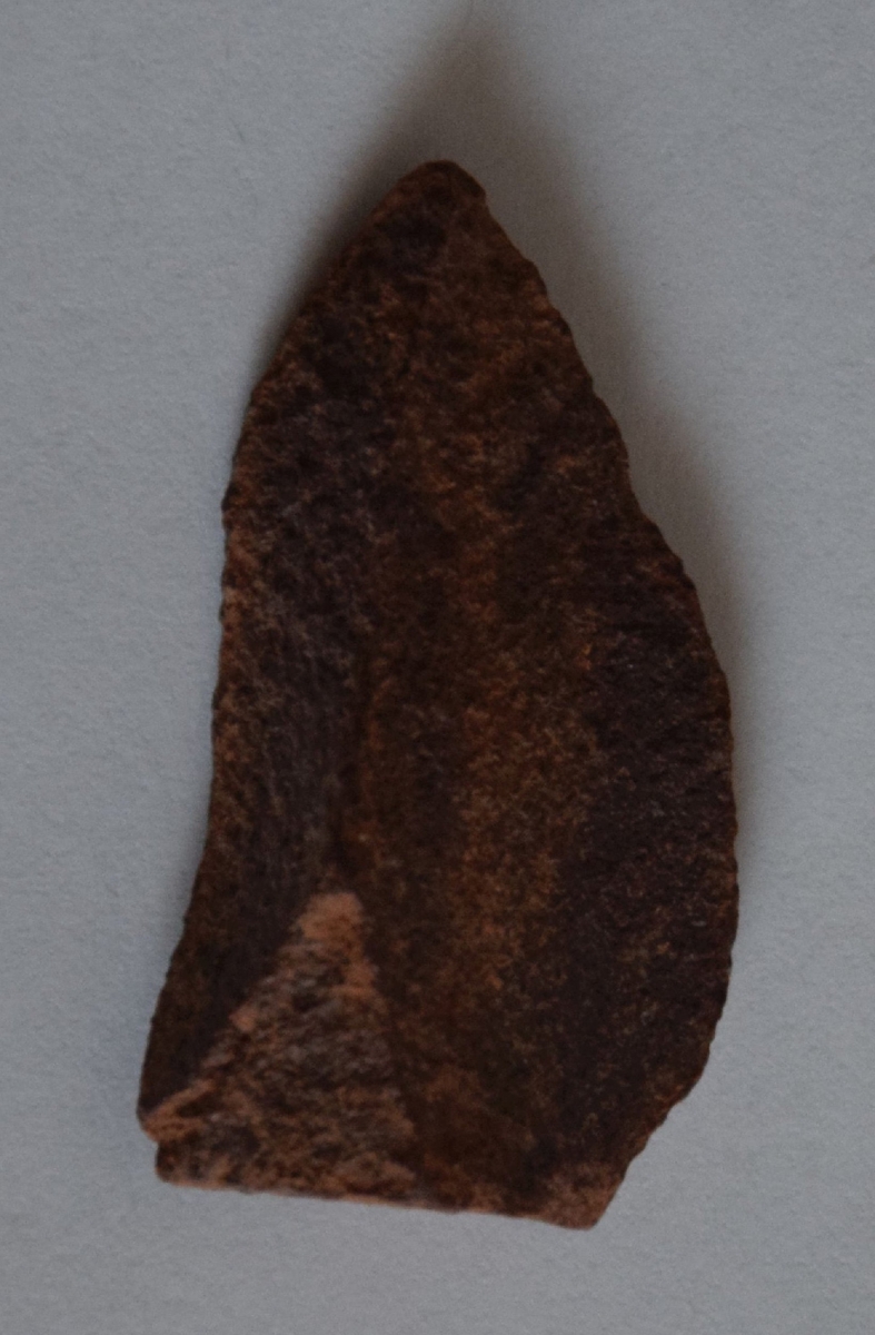 A debitázstengelytől enyhén balra elhajló, háromszög keresztmetszetű, retusálatlan hegy.