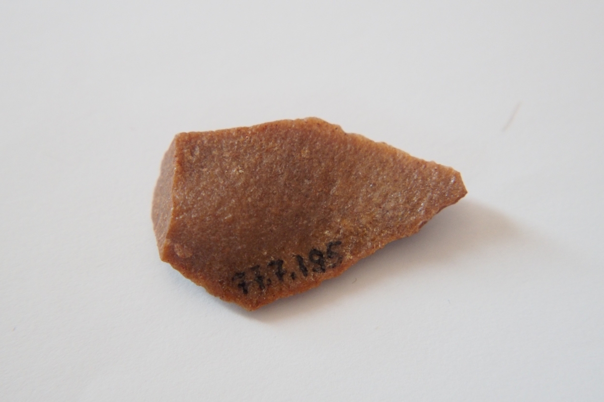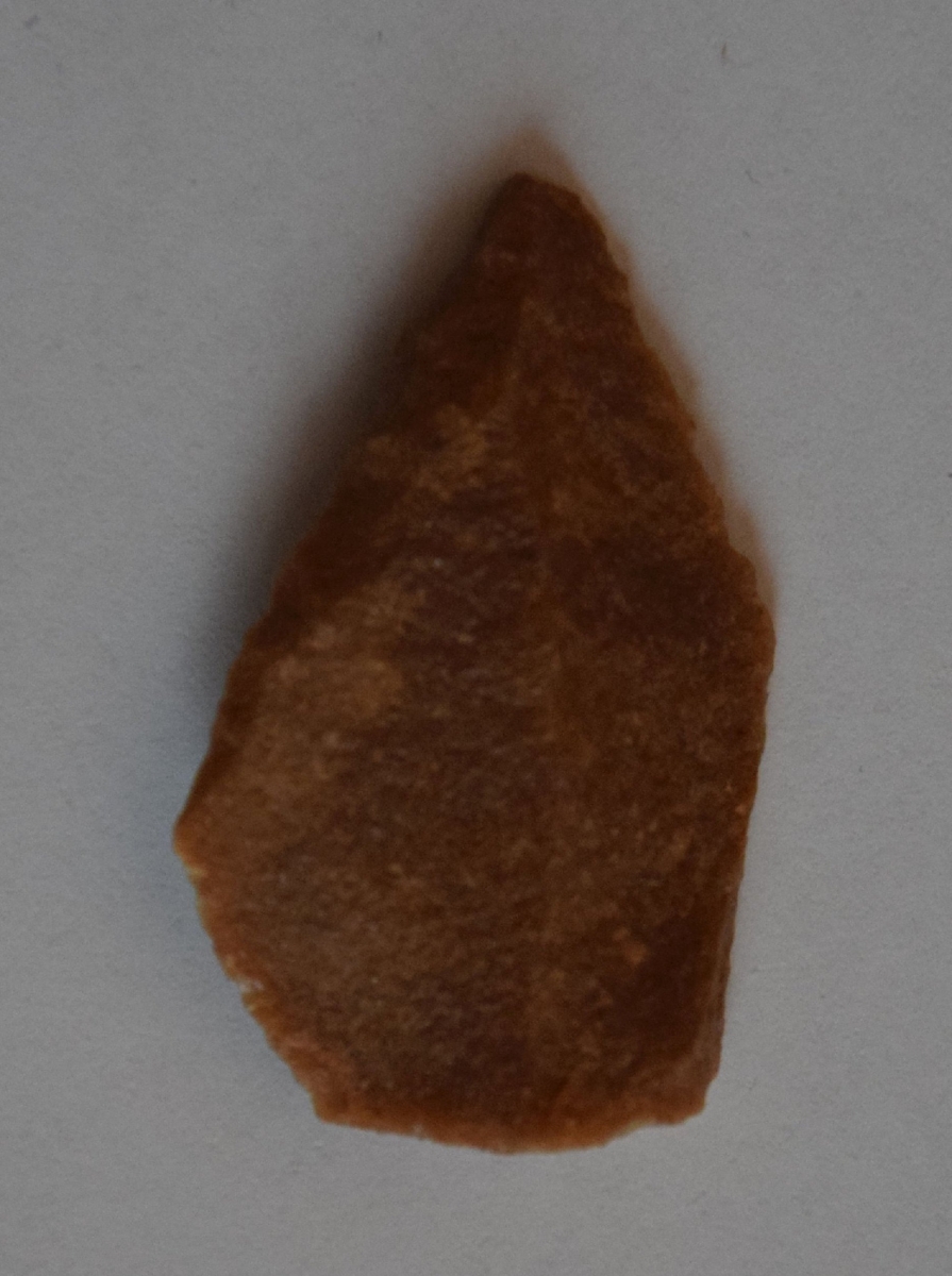 A debitázstengelytől enyhén jobbra elhajló, sub-trianguláris keresztmetszetű hegy. A bal oldalél egyenes vonalú disztális vége 30.7 mm hosszan retusált.