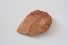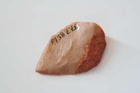 A debitázstengelytől erősen jobbra elhajló (kb. 30°), szabálytalan keresztmetszetű hegy. Bal oldalán a természetes külső felszín nyoma. A bal oldalél egyenes vonalú disztális vége 22.1 mm hosszan retusált.