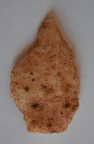 A debitázstengelyre szimmetrikus, sub-trianguláris keresztmetszetű hegy. A szabálytalan vonalú baloldali él elnagyoltan megmunkált, az ívelt jobboldali él meredeken retusált (tompított).