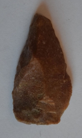 A debitázstengelyre szimmetrikus, szabálytalan keresztmetszetű hegy. Az egyenes vonalú oldalélek meredeken retusáltak. A hegy enyhén 'csapott'.