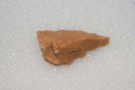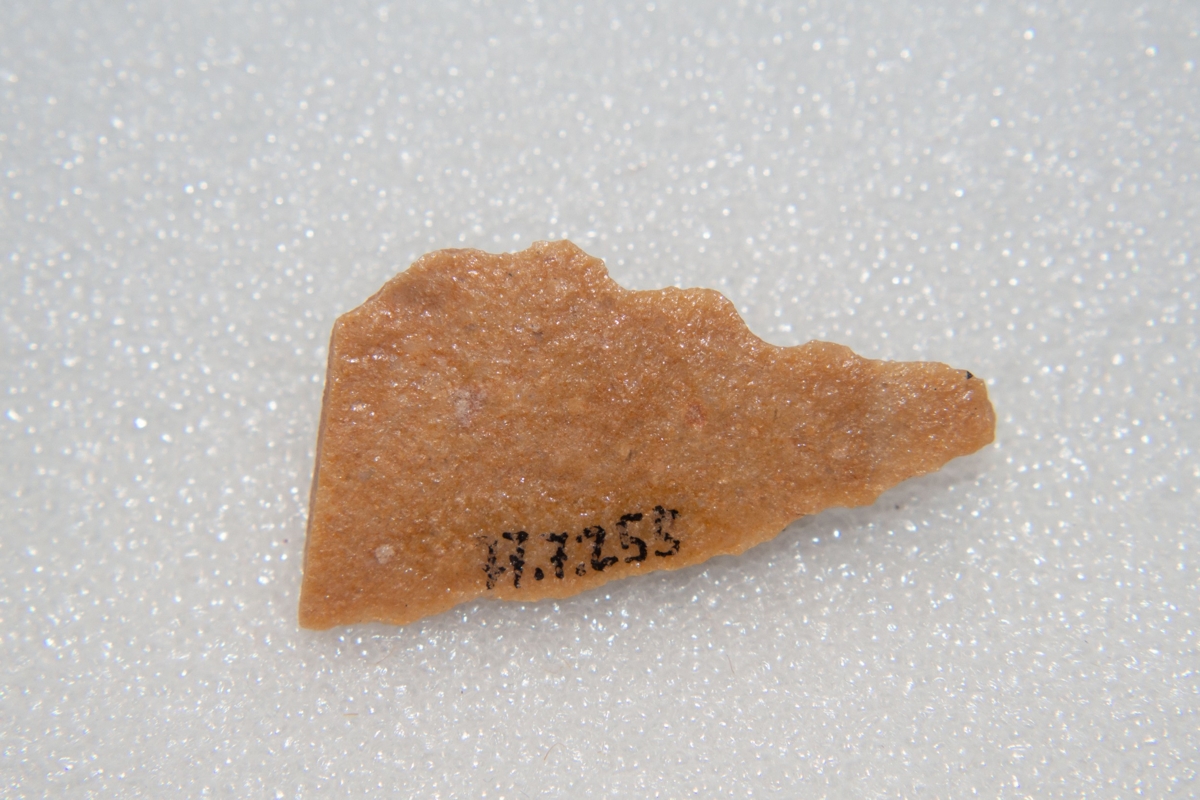A debitázstengelytől enyhén jobbra elhajló, sub-trianguláris keresztmetszetű hegy. Proximális vége egyenes vonalúan, (szándékosan) törött. Az enyhén ívelt baloldali éle retusált, a megközelítőleg egyenes vonalú jobboldali él 'fogazott'. A hegye régen törött vagy 'csapott'.
