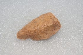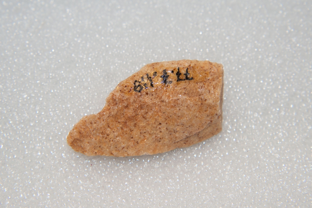 A debitázstengelytől enyhén jobbra elhajló, sub-trianguláris keresztmetszetű vaskos hegy. Az enyhén ívelt oldalélek megmunkálása elnagyolt. A bal oldalél disztális végén, a hegy közelében egy kis retusálatlan völgyelés található.