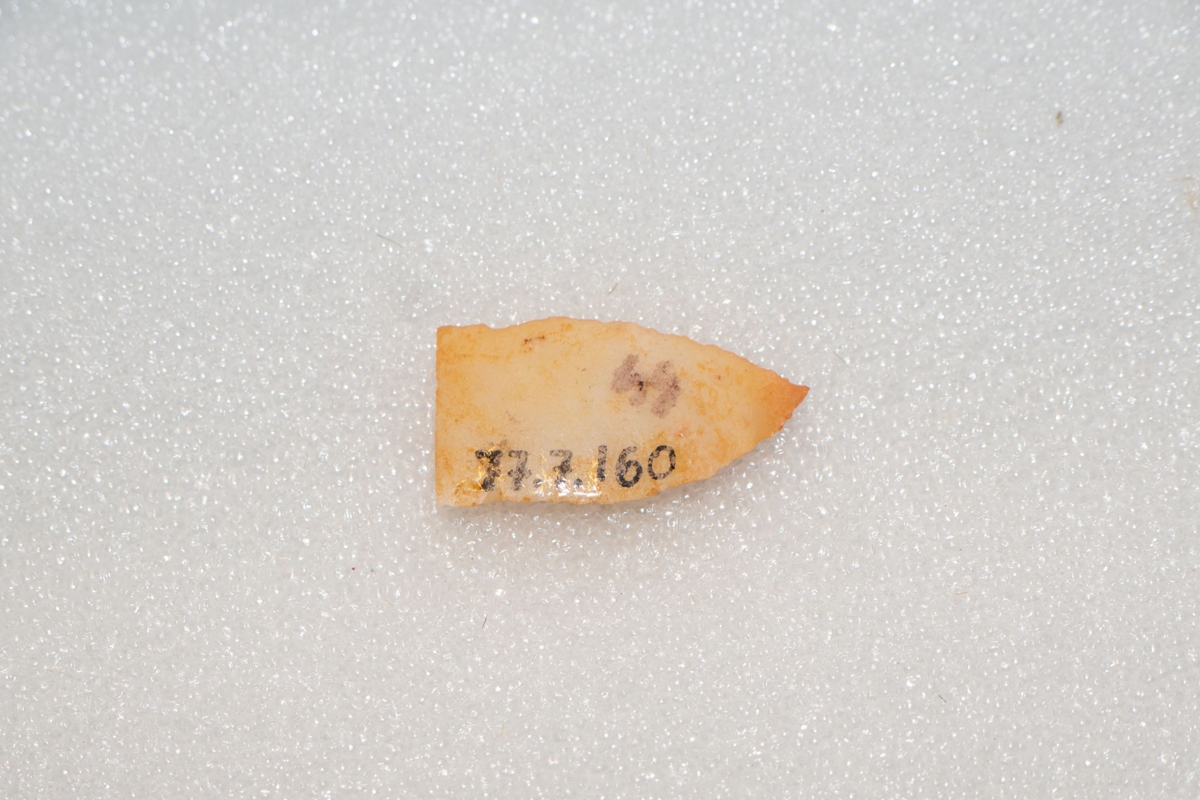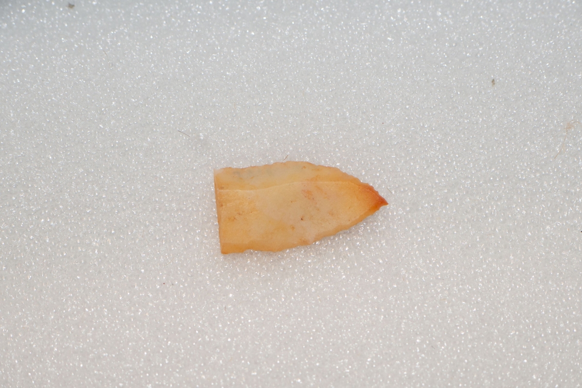 A debitázstengelyre szimmetrikus, sub-trianguláris keresztmetszetű hegy. Proximális vége egyenes vonalúan, (szándékosan) törött. Az enyhén ívelt vonalú oldalélek retusáltak.