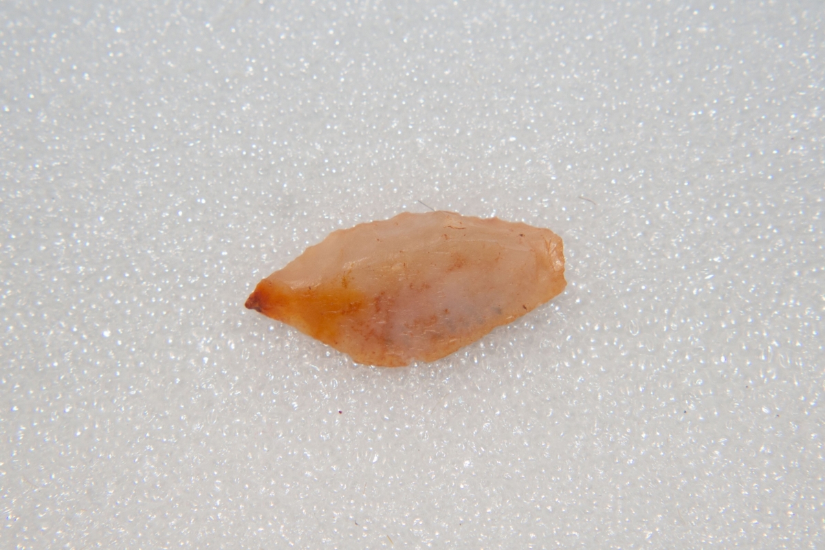 A debitázstengelyre megközelítőleg szimmetrikus, sub-trianguláris keresztmetszetű hegy. Proximális vége (szándékosan) törött. Az enyhén ívelt vonalú bal oldali él disztális vége és az ívelt jobb oldali él retusált.