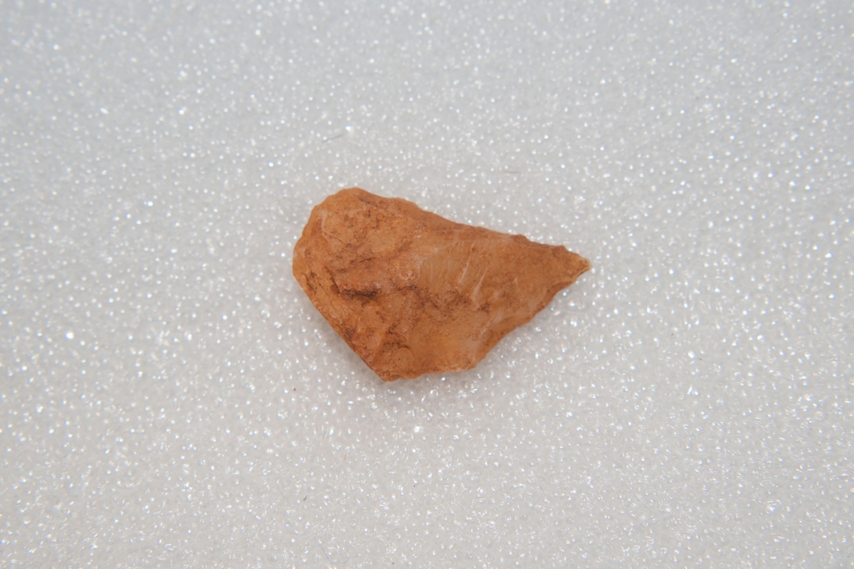 A debitázstengelytől erősen (kb. 25°) jobbra elhajló, szub-trianguláris keresztmetszetű hegy. A törött vonalú oldalélek retusáltak.
