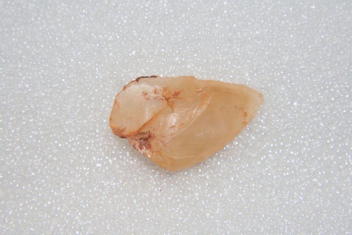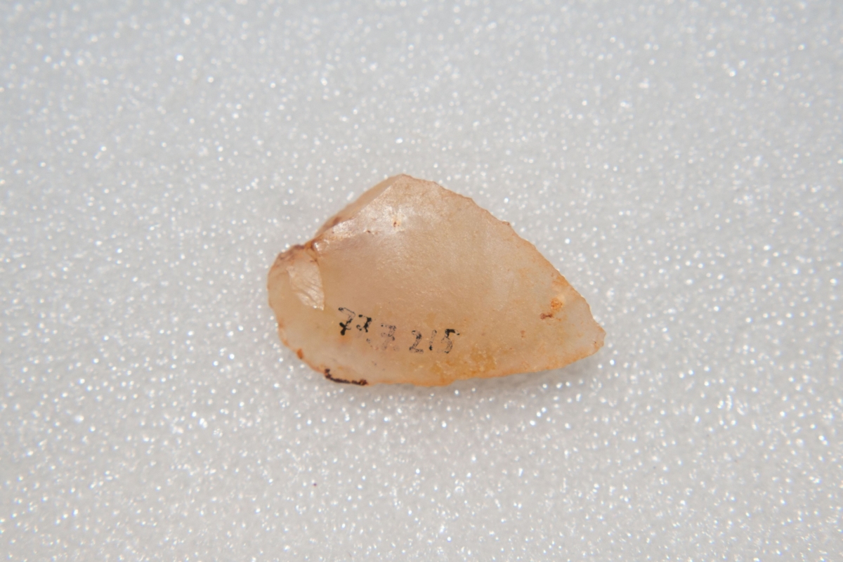 A debitázstengelytől erősen (kb. 30°) jobbra elhajló, szabálytalan keresztmetszetű hegy. Az oldalélek retusáltak.