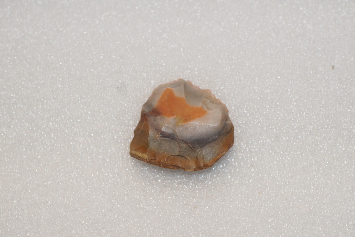 A debitázstengelyre megközelítőleg szimmetrikus, szabálytalan keresztmetszetű szilánkon készült vakaró. Bázisát és bal oldalélét az erodált/patinás kavicskéreg borítja. Disztális végén és a jobb oldalélen félmeredek retusálás.