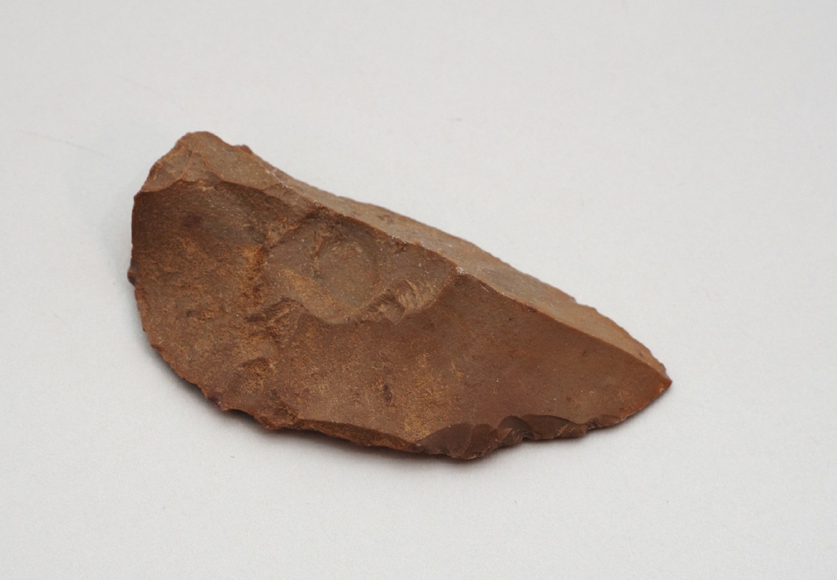 A debitázstengelytől enyhén balra hajló, aszimmetrikus háromszög keresztmetszetű retusálatlan szilánk. Bal oldaléle egyenes vonalú, jobb oldaléle ívelt. Az éleken újabb keletű csorbulásnyomok.
